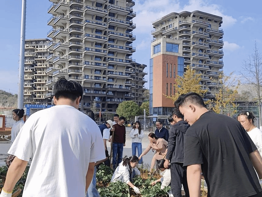 师生齐心协力劳作
