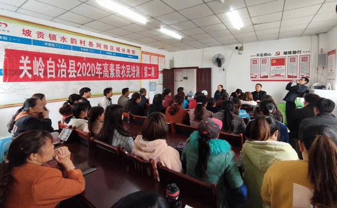 2021年4月12日上午9:30,由安顺学院承办的关岭自治县2020年度高素质农民培训班(第二期)顺利开班。安顺学院农学院党委书记施渺筱、院长张玉波,关岭自治县农业广播电视学校柴平,培训班班主任翟精武及来自关岭自治县坡贡镇水韵村53名学员参加了开班仪式。
