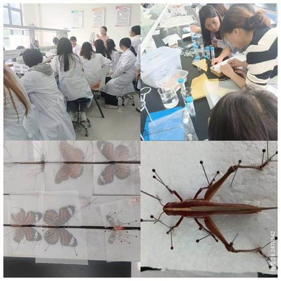 回到学校,大家在实验室认真整理采集的各种昆虫,对其进行分类和保存,并积极讨论标本采集过程中遇到的各种问题。最后在姚茂元和冯雪立两位老师的悉心教导之下,完成了各种昆虫标本的制作。
