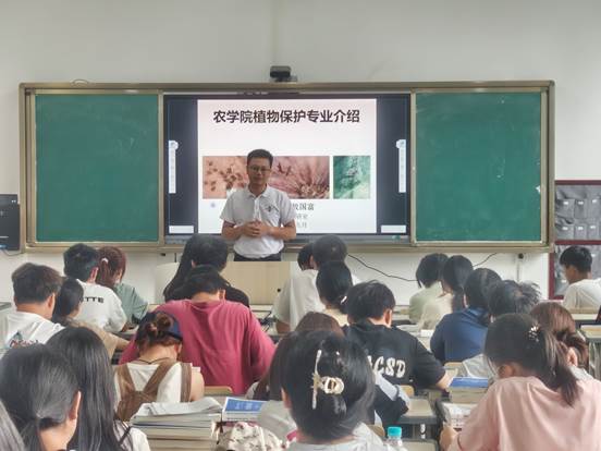 9月6日上午10:30,农学院植物保护教研室新生见面会暨专业宣讲大会在顺理楼121召开,教研室教师、2024级和2025级植物保护专业同学参加本次会议。