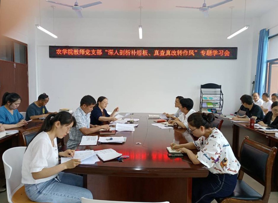 按照学校结合“七一”建党和喜迎二十大安排。2022年6月27日下午,农学院在顺理楼会议室组织召开“深入剖析补短板、真查真改转作风”专题学习会。农学院领导班子成员、全体党员及在编在岗教职工参加学习会,会议由党委书记施渺筱主持。