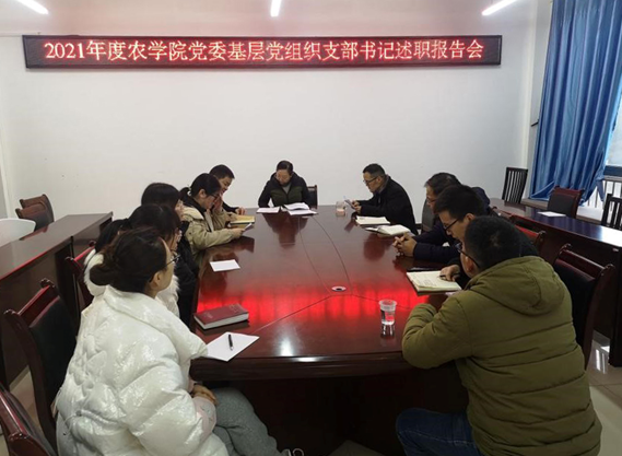 1月4日,农学院召开2021年度基层党支部书记抓党建工作述职评议会。农学院党委班子成员、各科室干部及教师代表参加会议,会议由党委书记施渺筱同志主持。