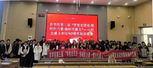 为铭记光辉历史,传承红色基因,纪念遵义会议胜利召开90周年。11月29日,农学院在安道楼阶梯教室隆重举办第三届“学党史团史·悟转折力量·做时代新人——纪念遵义会议90周年知识竞赛”活动。此次活动由农学院学生党支部、团总支学生会联合举办。