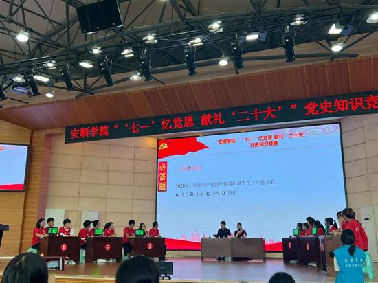 为庆祝建党101周年,献礼二十大,持续巩固拓展党史学习教育成果,2022年6月24日下午,安顺学院团委在学术报告厅举办“‘七一’忆党恩献礼‘二十大’”党史知识竞赛活动。农学院党委书记施渺筱应邀出席活动,各二级学院党委书记、团总支书记及学生代表到现场观摩比赛。