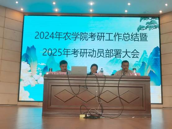最后,农学院院长张玉波对农学院2024年考研工作进行总结和对2025年考研工作做动员部署。他指出,2024年,我院认真组织、狠抓落实,同学们坚定目标、刻苦备考,考研录取率再创新高,考研质量有了新提升,实现数量与质量双提高。2025年,同学们要抓住当前研究生扩招、社会认可度高和实现更高人生价值等方面优势,希望大家立志考研要明确目标,坚定信念;科学计划,注意方法;良好心态,调整作息;加强交流,互相支持;关注政策,抓住机遇。他表示,农学院一直以来都非常重视学生的考研工作,将继续为同学们考研提供全方位的服务和支持,做同学们考研最坚强的后盾,力争2025届考研报考率、上线率、录取率再创新高。