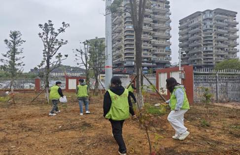 活动期间,63名志愿者组成“清理攻坚组”,15名志愿者组成“播种养护组”,分阶段开展行动。清理组人员手持各种劳动工具,对博物馆绿化带及周边步道的生活垃圾、枯枝落叶、隐蔽杂物进行全面清理,重点整治长期堆积的卫生死角。清理工作完成后,播种养护组结合实地状况,精心挑选混播四季青、红花三叶草等兼具观赏性与生态适应性的种子,依次进行翻松土壤、均匀撒种、轻覆薄土等操作,每个步骤都严谨细致,蕴含着对环境养护的期望。