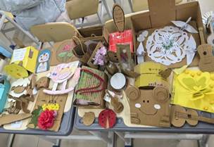 活动现场宛如一场创意与艺术的盛宴,废弃纸板在一双双巧手下变得栩栩如生,或成灵动飞鸟,或变玲珑瑞兽,或为抽象艺术佳作,每件作品都散发着独特的魅力,展现了创作者的奇思妙想。