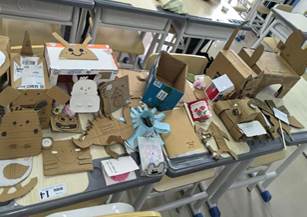 在创作过程中,同学们相互交流技艺,分享灵感,天真创意为活动增添了无限生机与活力。这不仅是一次手工创作之旅,也是一次心灵环保觉醒之旅,让废弃纸板在创意光芒下焕发新生,为校园艺术画卷增添一抹别样色彩,也为环保理念传播奏响动人乐章。
