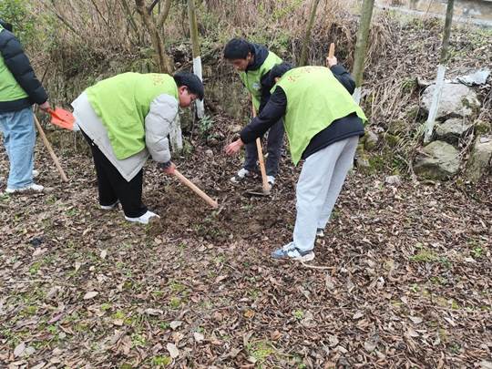 活动当天,阳光灿烂,微风和煦。师生们手持铁锹、水桶等工具,齐心协力投入到植树活动中。在果树专业教师李德燕博士的悉心指导下,大家分工明确,配合默契。有的同学负责挖坑,一锹锹地掘开坚硬的土壤;有的同学小心翼翼地将桃树苗放入坑中,扶正树苗,确保其挺拔生长;还有的同学忙着填土、浇水,每一个环节都认真细致,仿佛在呵护着一个个新生的希望。