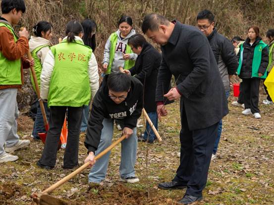 早春三月,万物复苏,在“3.12”植树节这一天,农学院组织师生代表在安顺学院桃花山参加植树节活动。农学院党委书记施渺筱,院长张玉波等领导班子成员,教师代表,2023级农学、植物保护专业学生以及农学院学生志愿者等参加活动。大家一同以实际行动践行雷锋精神和绿色生态文明理念,为构建美丽校园添绿增彩。