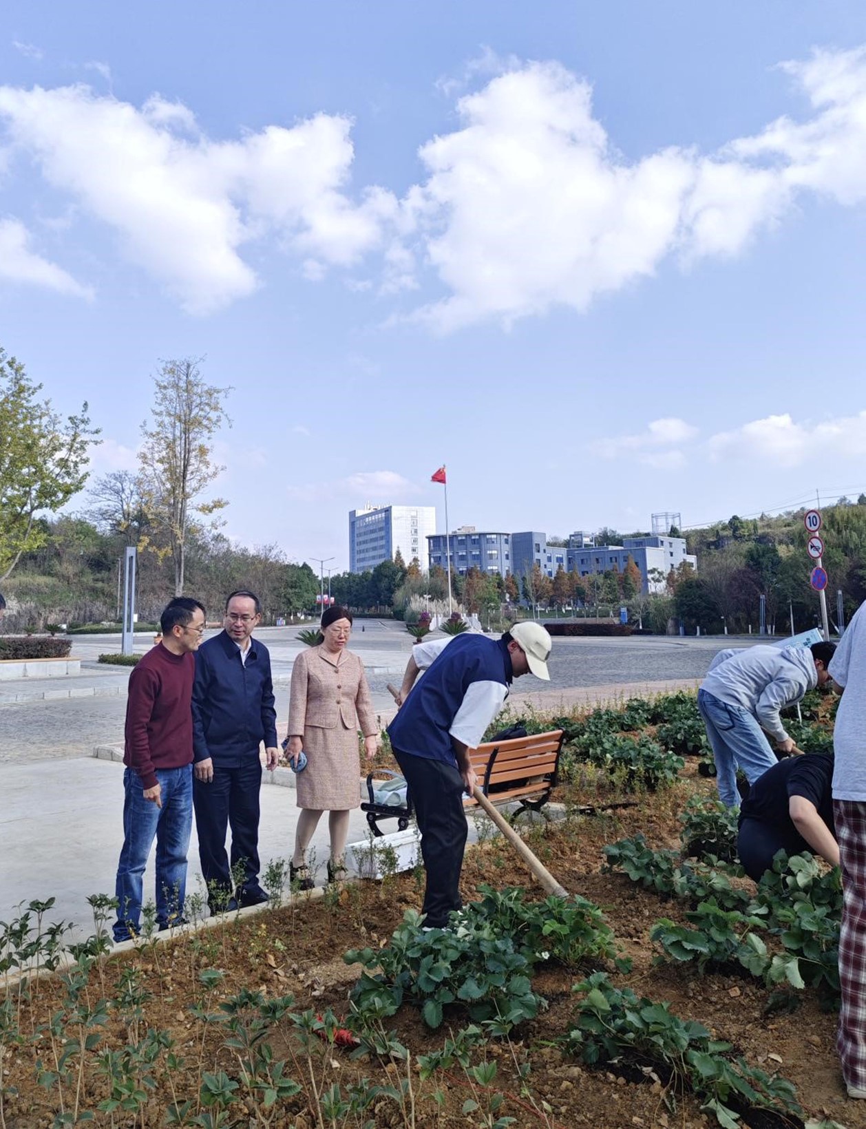 为进一步弘扬农耕文化、践行劳动教育,同时为校园增绿添彩,以更好的姿态迎接即将到来的本科教育教学审核评估。11月15日下午,农学院在安顺市博物馆前开展了一场别开生面的劳动教育活动。安顺学院党委书记罗荣彬亲临现场指导,农学院党委书记施渺筱、院长张玉波全程陪同参与,农学院师生党员参加活动。