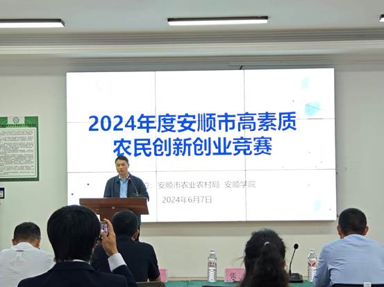 2024年6月7日,2024年度安顺市高素质农民创新创业竞赛决赛在贵州省高校乡村振兴研究中心三楼会议室圆满落幕。安顺学院副校长张来出席决赛开幕式并致辞,安顺学院农学院党委书记施渺筱,安顺学院农学院党委副书记、院长张玉波,安顺市农广校校长袁华杨参加开幕式。决赛评委由安顺市农业农村局专家、安顺学院农学院教师、安顺市企业家代表等共同组成。