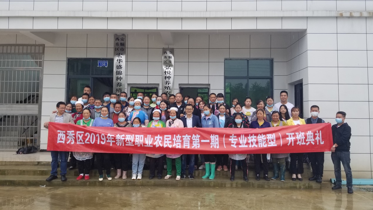 2021年6月11日上午9:00,由安顺学院承办的2019年西秀区新型职业农民培育顺利开班。安顺学院农学院院长张玉波、西秀区农业农村局党组成员、分管领导全斌、西秀区农业农村局科技教育科科长,培训班管理人员及来自大西桥镇河桥村50名学员参加了开班仪式。