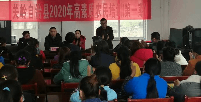 2021年3月10日上午9:30,由我院承办的关岭自治县2020年度高素质农民培训班(第一期)顺利开班。安顺市农广校副校长袁华扬、吴长春,关岭自治县农广校校长李玲、安顺学院农学院院长张玉波、关岭自治县农广校柴平老师、培训班班主任翟精武老师及来自关岭自治县花江镇木工村53名学员参加了开班仪式。