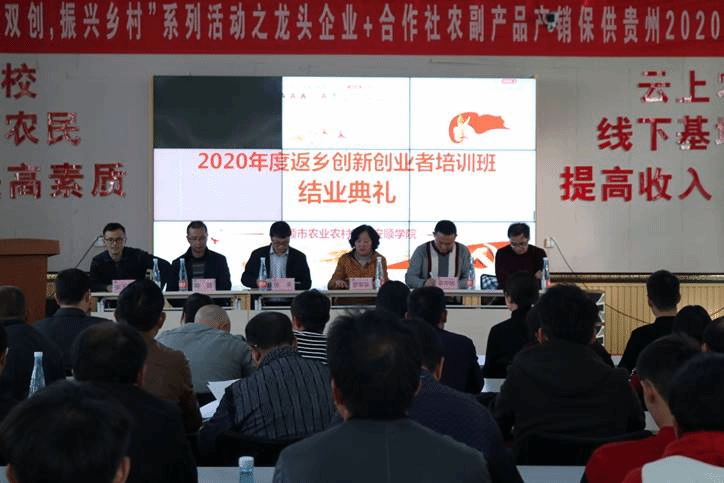 2020年11月2日-15日,我院承办的安顺市2020年返乡创新创业者培训工作圆满结束,来自安顺市全市的50名现代职业农民参加了为期15天的培训。安顺学院副校长张来、安顺学院农学院党委书记喻辉、农学院副院长张玉波、市农广校校长罗军英、副校长袁华杨、吴长春、市农广校陈亚丽和本次培训班班主任、部分授课教师以及来自安顺市各县区50名学员参加了结业典礼。