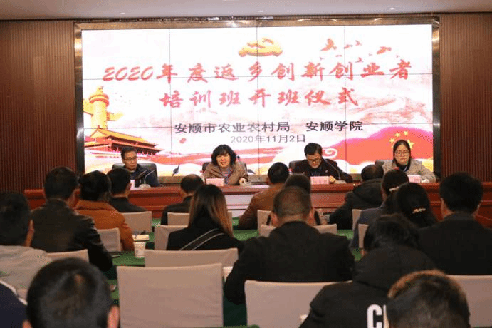 2020年11月2日上午9:00,由我院承办的2020年度返乡创新创业者培训顺利开班。安顺市农业广播电视学校校长罗军英、安顺市农业广播电视学校副校长吴长春、安顺市农业广播电视学校陈亚丽老师、安顺学院农学院副院长张玉波、培训班班主任及来自安顺市各县区50名学员参加了开班仪式。