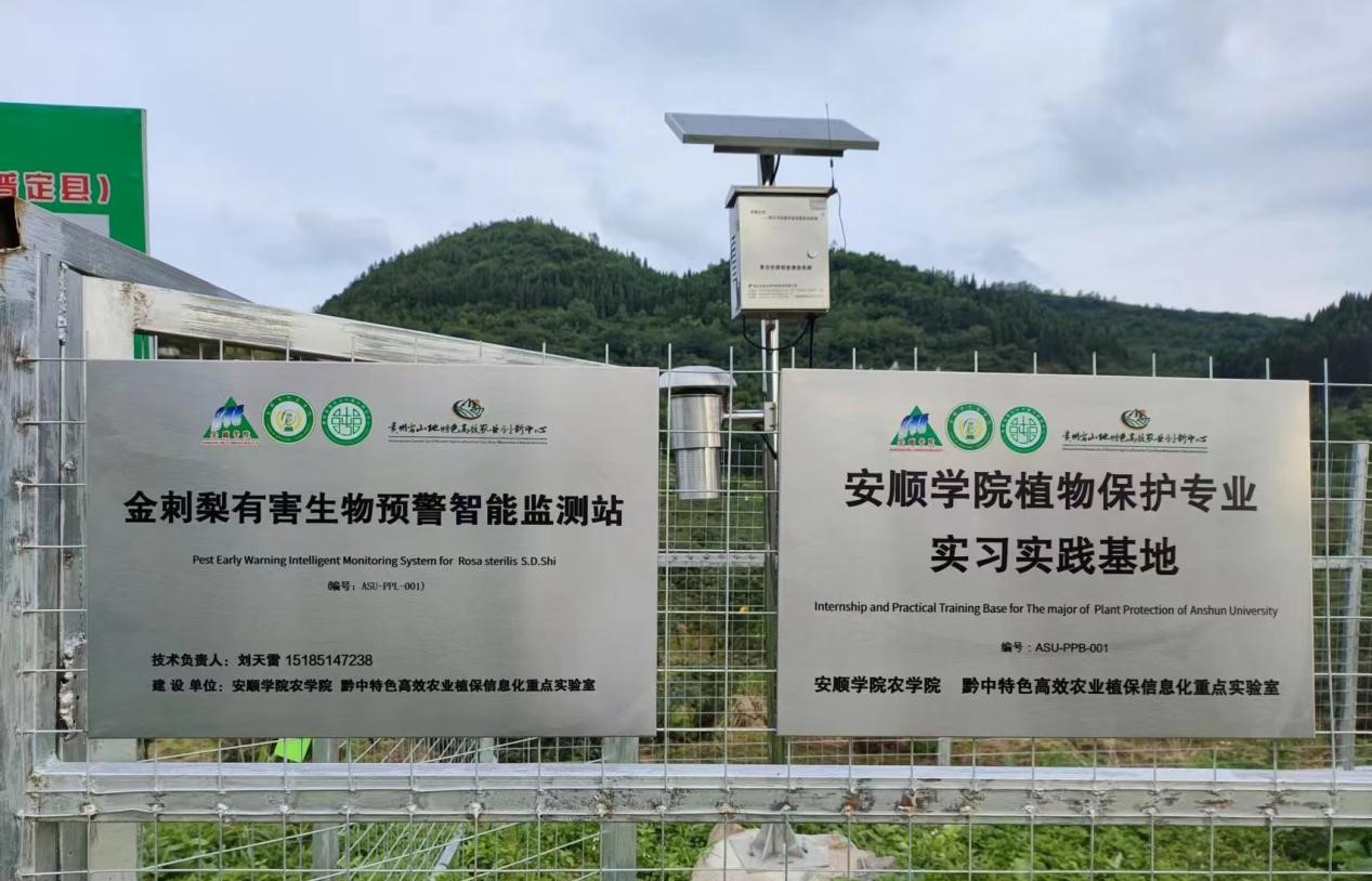 近日,安顺学院金刺梨植保团队在普定县马官金刺梨种植基地成功建成并启用了首个金刺梨有害生物预警智能监测站。