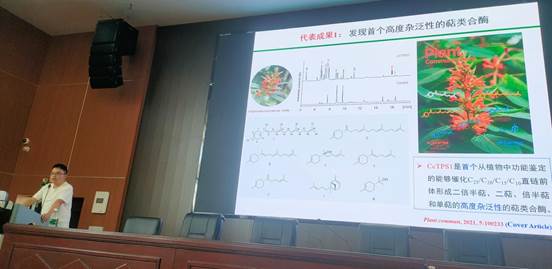 报告会上,李德森博士分享了硕士和博士期间的研究成果,即利用天然产物化学、分子生物学、合成生物学等技术手段从药用植物及内生真菌中共克隆得到萜类合酶候选基因40余个,鉴定的酶能够合成20余种骨架的萜类化合物,利用工程菌可实现至少40种萜类化合物的从头合成。同时李德森博士从多个方面分享了自己的考研经验,围绕明确目标、学校选择、备考策略和树立自信等与学弟学妹们进行互动交流,李德森博士结合自己的求学经历,为同学们答疑解惑,大家听后受益匪浅。