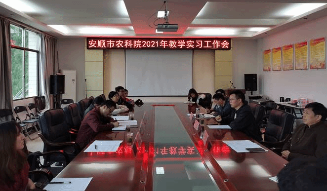 4月6日,张玉波院长等一行带实习学生赴安顺市农科院报到。市农科院召开了教学实习工作会,参加会议的有市农科学党委书记张鹏、院长李用奇、副院长陈孟权等。
